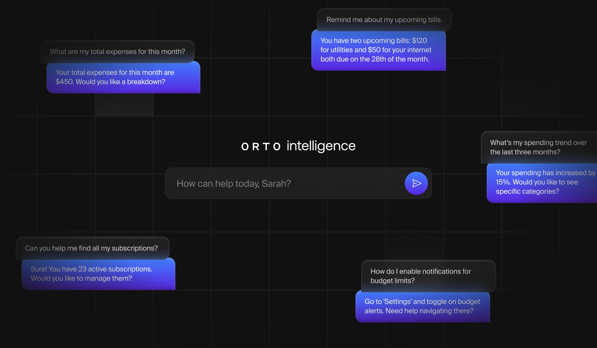 Effortlessly manage your finances with Orto's AI-powered features for quick transactions and personalized insights.